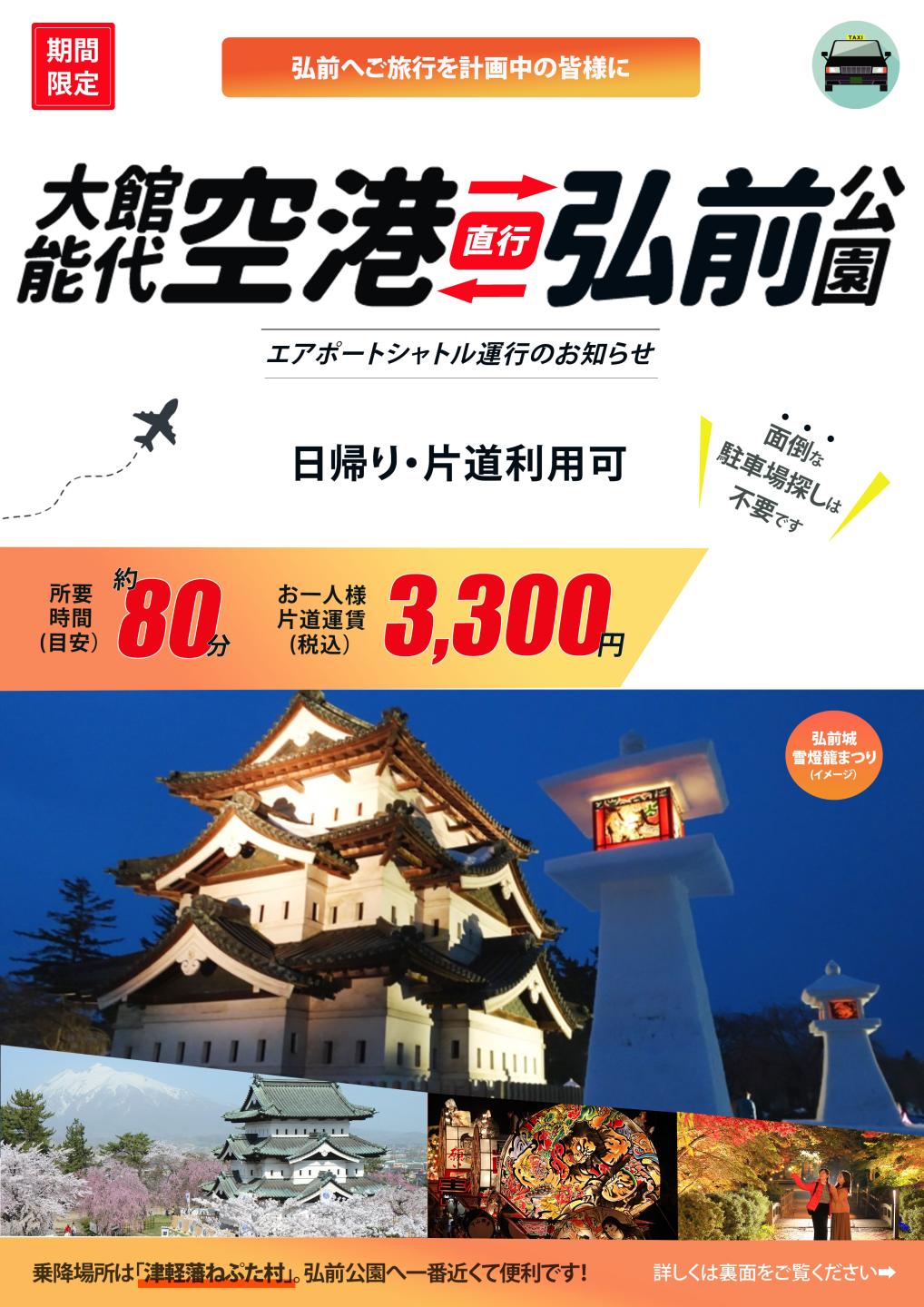 大館能代空港から弘前公園まで、直行80分。(予約制)