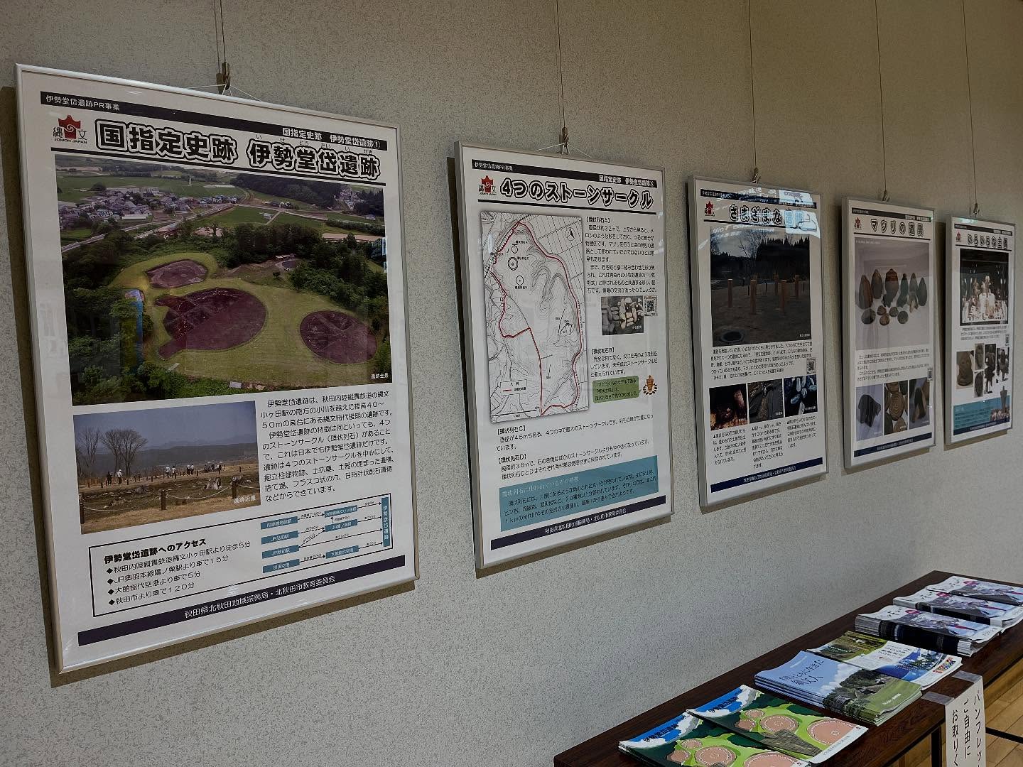 ターミナルビル2階出発ロビーで世界文化遺産「北海道・北東北の縄文遺跡群」の構成資産『大湯環状列石(鹿角市)』、『伊勢堂岱遺跡(北秋田市)』、『御所野遺...