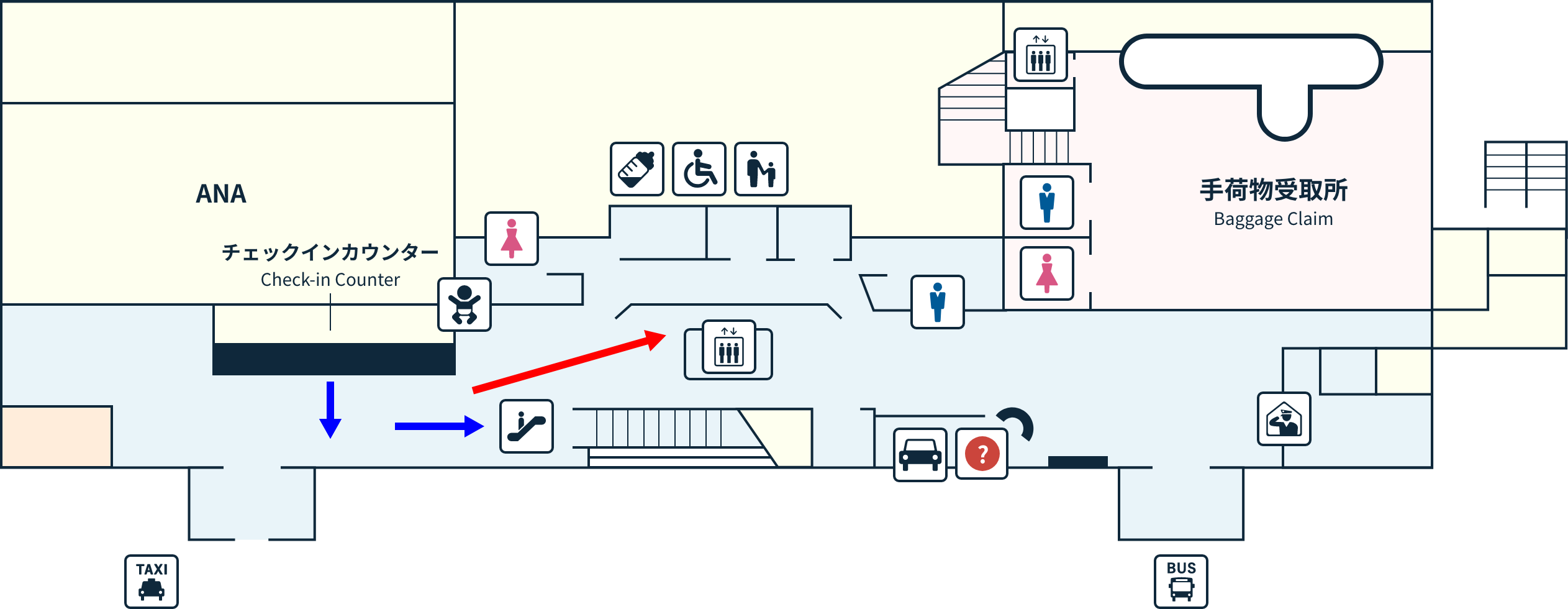 ※ご高齢のお客様、小さなお子様連れのお客様、妊娠中のお客様、お手伝いが必要なお客様はエレベーターをご利用ください。