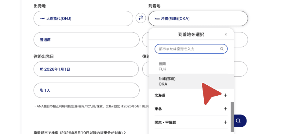 「到着地」に「沖縄(那覇)」を入力
